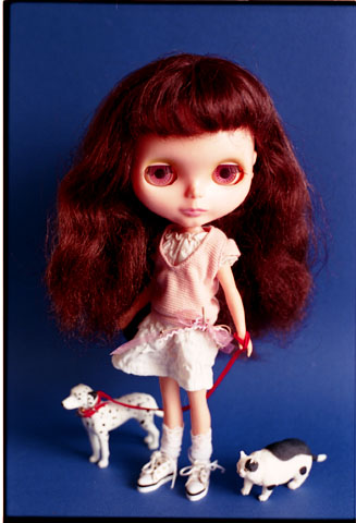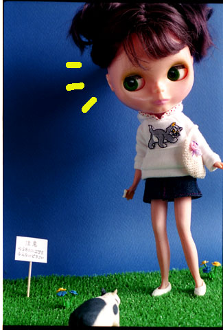 024 >> Apr.2003 人形棚にブライスは10体までと決めてるので、いまのところクローゼットから出してるレプリカはこの子だけ。青が似合うアジアンは、特に夏場はさわやかで絵になりますね。でも手縫いのお洋服の縫い目がバッチリ見えてて、ちょっと恥ずかしいわ。(^^;; |