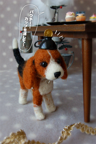 549 >> December 2007 席から降りるよう怒られたパクチー、 今度はティーカップを奪ってどこへ行く。。。? |