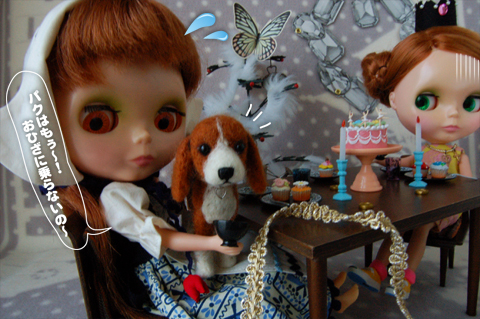 550 >> December 2007 パクチーときたら、なんとしてもパーティに参加するつもりみたい(^^;;。 こんないたずらっこがいるとパーティどころではありませんね〜。 |