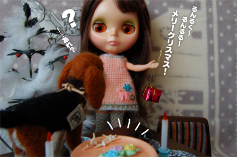 548 >> December 2007 メリークリスマス! って、パクチーがアンナの席を占領してるよ〜。 |