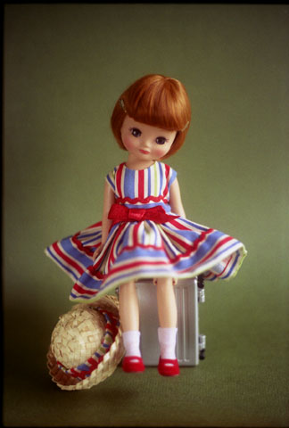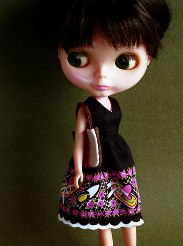 044 >> June 2003 年に数回、猛烈にお洋服を作りたくなる時期がめぐってきます。あれこれ生地を買い集めては作り終える前に熱がさめ、そして生地の山が残されるわけです(笑)。このお洋服はどうしても作っておきたかったので、生地を買ったその日のうちに作ってしまいました。もとはルル・ギネスのハンカチなのです。 |