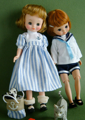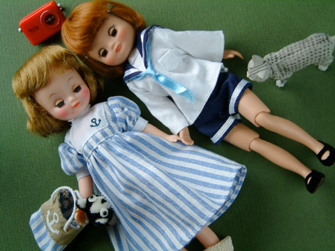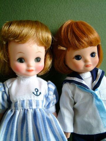 059 >> July 2003 左がヴィンテージ、右がレプリカ。肌の色やアイメイクが違うの分かります? こういう違いがあるとぐぐぐいっと興味湧いちゃうんですよね〜(^^;;。他にどんな違いがあるのか、種類はどれくらいあるのか等々。そのうち "Betsy Dictionary" なんて始めたりしそうな自分が怖い(笑)。 |
