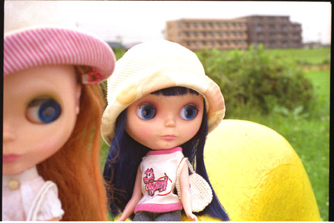 063 >> August 2003 草っぱらに何故か原色の奇妙な動物のオブジェたち。『シャイニング』で、トピアリーの動物たちが襲ってくるシーンを思い出してしまいました。なんだってこんなものを作ったのか世田谷区。パーキーに言わせると写真の二人(一人+一匹)が相似形だって。ちょっとひどいと思いません? |