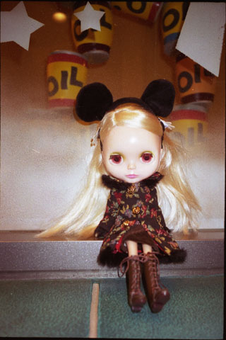 095 >> December 2003 ディズニーランドに行って来ました。せっかくブライスを連れて行ったのですが、案の定、人が多すぎてほとんど撮影できず(笑)。とりあえず、ねずみみゲットでパチリ! |