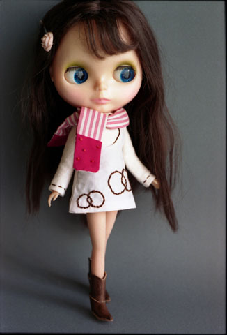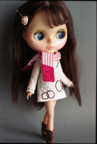 125 >>February 2004 こちらはホコモモのみどりさん作のアウトフィット。 ほんのり淡いピンクがブルネットの髪にぴったり合って、とっても気に入っているんです。 本当はリバーシブルで、茶色のワンピとしても着れるんだけど、もっぱらこっちのカラーで着用中。 |