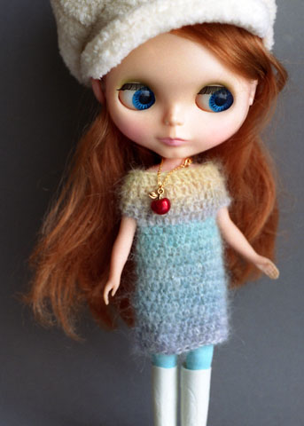 124 >> February 2004 こちらもオフ会でいただいた、ぱんさん作の素敵ワンピ! グラデーションカラーがとってもきれいでうっとりなのです。 こちらは赤毛ちゃんが独占してしまいました(^^;;。 リンゴのネックレスはみどりさん作。レトロな感じが可愛いでしょ? [ Outfits ] knitwear/CACHE-CACHE、necklace/ホコモモ |