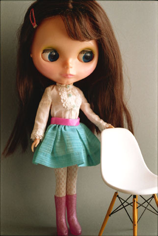 159 >> April 2004 この椅子、すごく素敵なのだけど、ブライスが座るとほとんど隠れてしまうのが惜しい。それと、ちょっと安定が悪いのよね。ということでほとんどベッツィー用になってます。 |