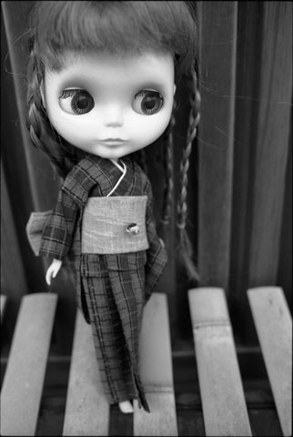 184 >> July 2004 @ 美濃 モノクロなのでお色が分かりませんが、暗い紫の着物にからし色の帯、帯留に緑のとんぼ玉を使っています。祖母が入院している時に、付き添いのヒマつぶしにと縫った思い出のある着物ですが、完成した着物を見た人はみんな「地味」と言うんですよ。それでなんとなくお蔵入りになってました(^^;;。 今回モノクロの写真だったので、ちょうど良かったかも(笑)。 |