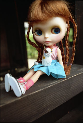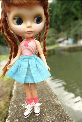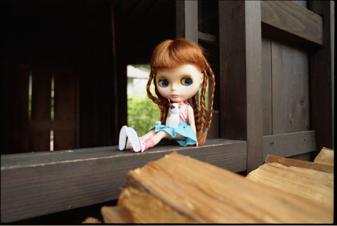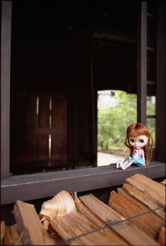 189 >> July 2004 @ 板取村 ここ、本当に山の奥深いんですよ。きれいな川が流れていて、川魚がいっぱいいるんです。アンナちゃんが立っているのはヤマメの生け簀のフチ。たぶん、晩ごはんに出たヤマメはここにいたんだろうな(^^;;。