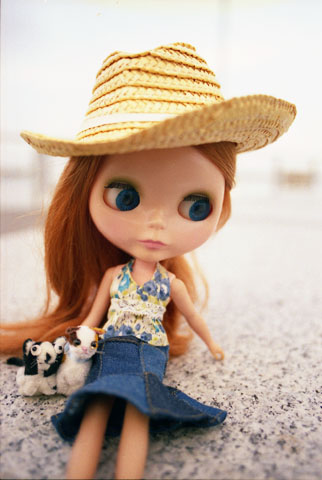 201 >> June 2004 @ 横浜< こっちは、横浜の「ベイサイドマリーナ」にて。ここには去年だったか、八景島の花火大会の日に来たことがあるのですが、電車が混んで混んで、死にそうになった記憶が。(^^;; この日は自分用のワンピースと帽子、パーキー用の帽子をお買い上げ〜。 |