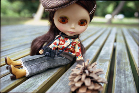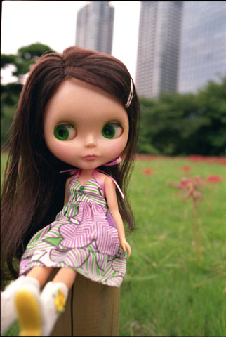 208 >> September 2004 @ 浜離宮庭園 この日パーキーは主に荷物持ちだったわけですが唯一欲しがったのが、このカメラ。ヒモがゴムになっていて、ポーズが付けやすいスグレモノ。500円だって。高いのか安いのか微妙なお値段。 そう言えば、この撮影をしていた時に近くでピクニックをしていたグループが、ブライスを見てびっくりしたのかヒソヒソ話をしながらこちらをじぃっと見るのです。以前ならそういう時は恥ずかしくなって撮影を中断したりしたものですが、最近そういうのがあまり気にならなくなりました。年を取ったから? そうだったら嫌だな(笑)。 |