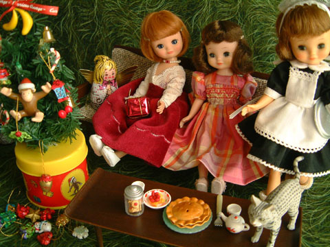 223 >> December 2004 ようやく飾り付けも一段落してパーティタイム!! すっかりメイド服姿が板についたシンディですが、ちょっと不満そう。。。