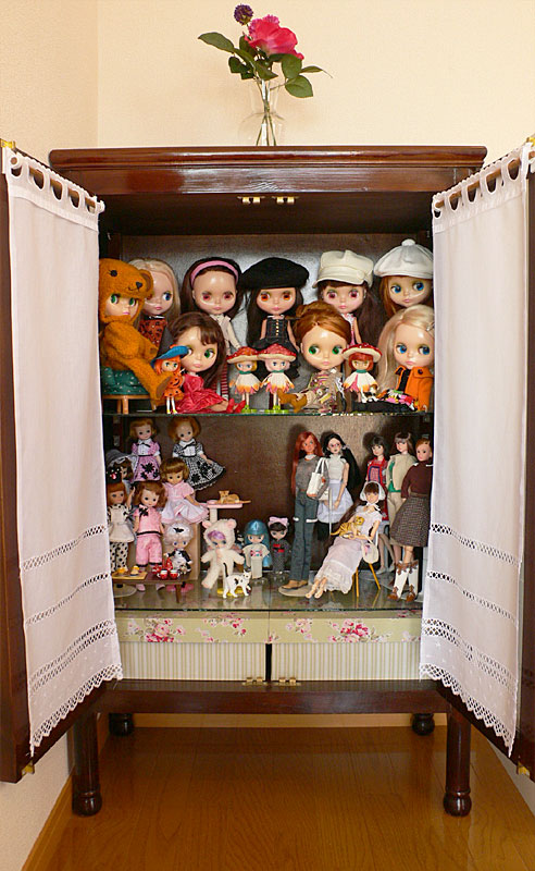 305 >> November 2005 ついでに。。。我が家の人形棚を初公開いたします! ちなみに、いつもは棚の上もう少し雑然としてますからね(^^;;。