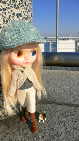 335 >> January 2006 @横浜 横浜におでかけした同じ日、近くにある海沿いのアウトレットにて。 良いお天気で、空と海の青がとてもきれいな日でした。 たまたま、ブルーグリーン系のコーディネイトだったブライス。 風景にぴったり合っているでしょ? [ Outfits ] salon de monbon |
