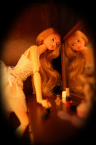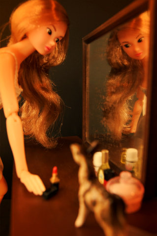 385 >> September 2006 夜遅く、人形棚のなかでひとり鏡を覗き込むmomoko。。。 そこだけが小さな舞台のよう。 |